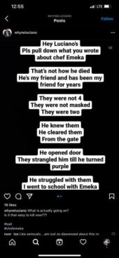 Emeka, 35, was a chef of repute in Abuja. He graduated from Le Cordon Bleu Paris with a Grande Diplomé in cuisine and patisserie. He created a combination of French cooking methods with Nigerian cuisine, and was known to have hosted celebrities and politicians at his restaurant which he operates in the capital city.